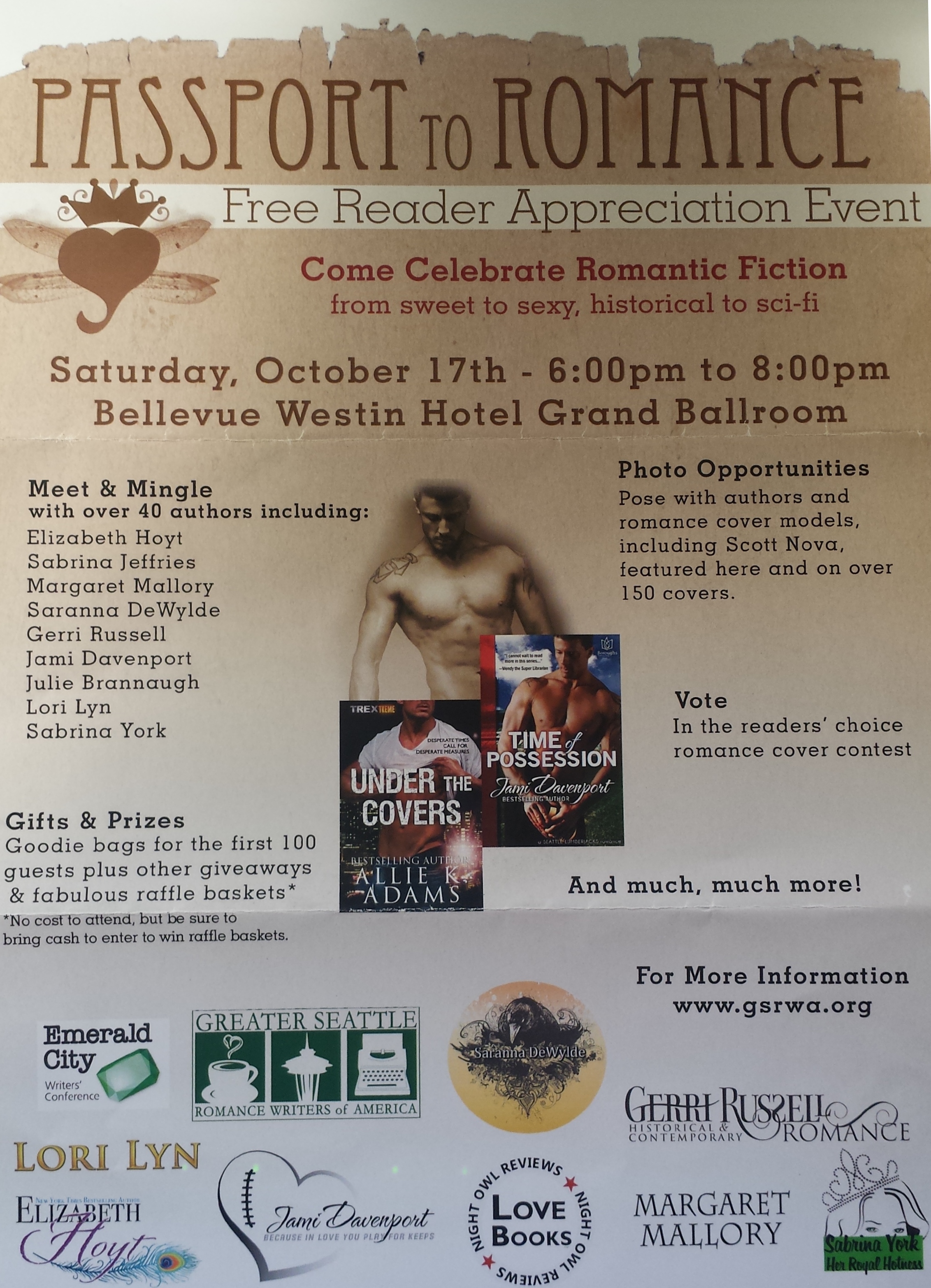 This Saturday is the 3rd Annual Passport to Romance Reader Appreciation Event, hosted by GSRWA! I love this event. It’s an opportunity to take home a BAG full of books! I’ve gone every single year, and I keep coming back for more. Why?