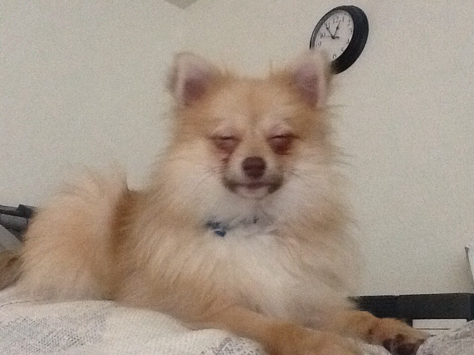 He’s very sleepy in this photo, as you can tell by the clock saying it’s almost 1:00am.